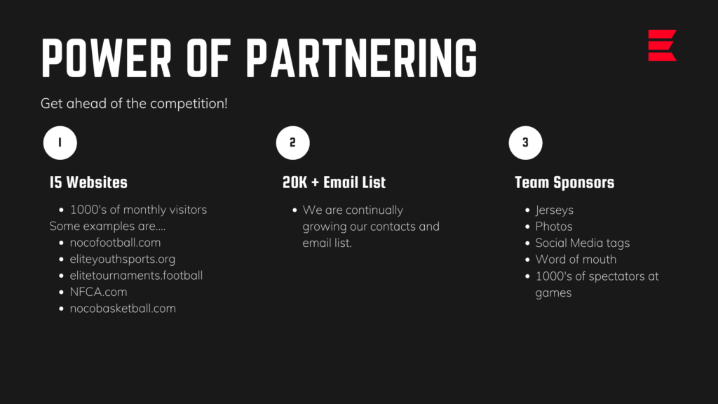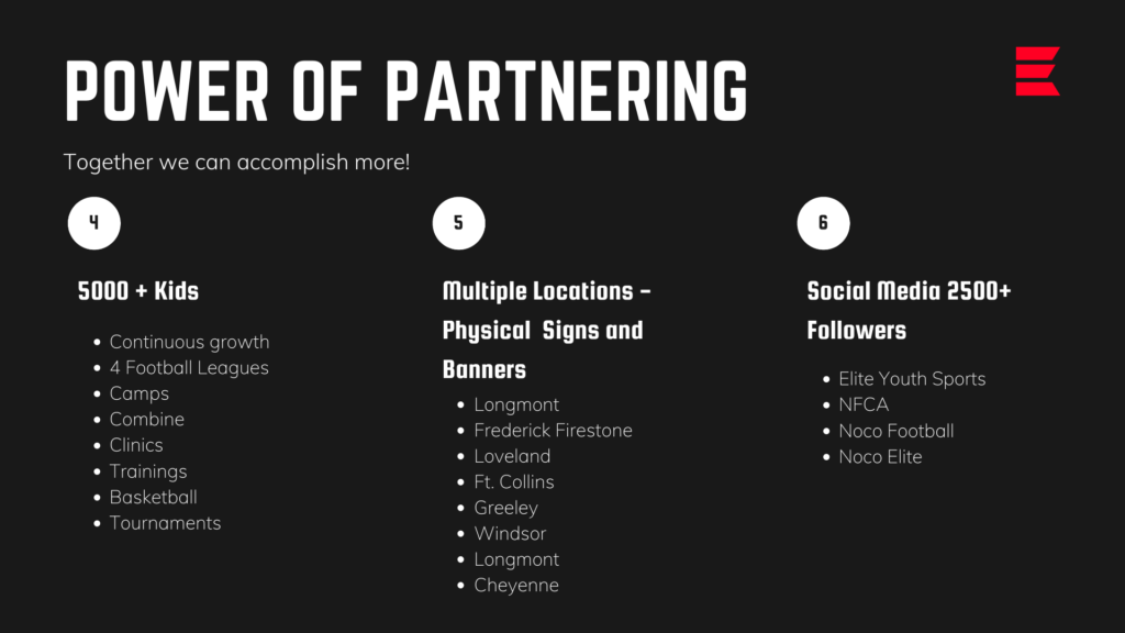 Become a Sponsor We believe all kids should have the opportunity to play sports and finances shouldn't be a roadblock! Donate! $1000 + $2500 + $5K + $10K + Donate Get in Touch We are here to help and will reply as quickly as possible! Thank you so much. Call or Text Us At 970 460 4004 Message Or Visit Us inquiry@eliteyouthsports.org Wherever they will let us play football! Keep In Touch Facebook-f Instagram Contact us to become a sponsor. Please enable JavaScript in your browser to complete this form.Your name *Your phone number *Your Email *Message* *PhoneSend Message